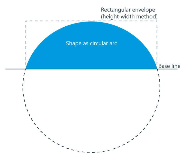 An die optisch ermittelte Tropfenkontur werden die Parameter einer Kreisbogengleichung angepasst. Als Kontaktwinkel wird der Winkel zwischen dem Kreisbogen und der ihn schneidenden Basislinie berechnet.