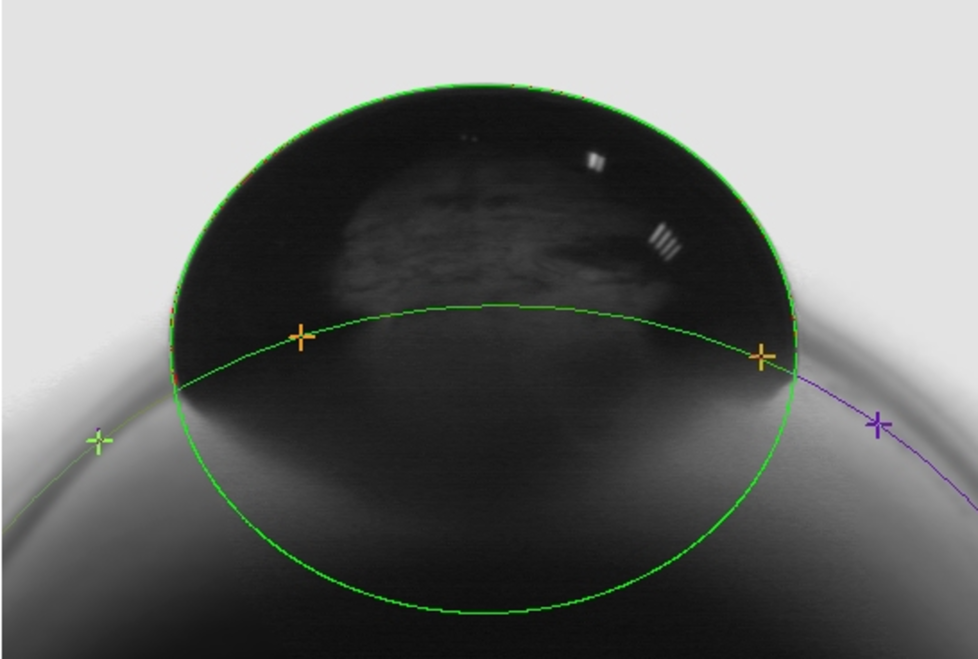The points of intersection between the fitted drop shape and the baseline are determined in all drop shape analysis methods for measuring the contact angle. These points of intersection correspond to the three-phase contact points of the system.