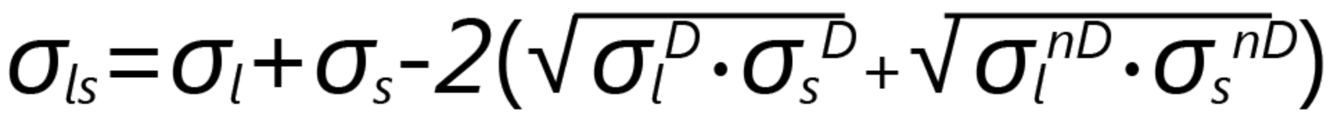 In the Fowkes method, the interfacial tension σsl is calculated based on the two surface tensions σs and σl and the similar interactions between the phases. These interactions are interpreted as the geometric mean of a disperse part σD and a non-disperse part σnD (not described by Fowkes in more detail) of the surface tension or surface free energy: