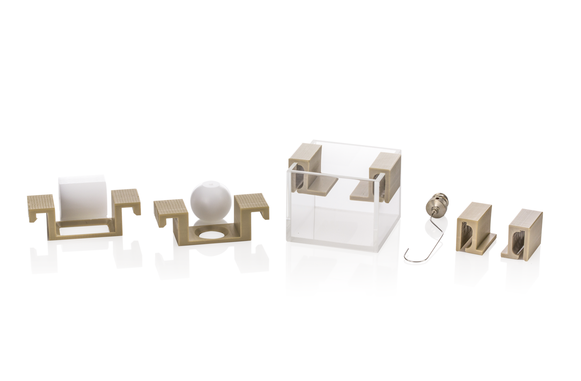 We have developed the sample holder and dosing set ST10 for measuring contact angle in a bulk liquid phase. Gas bubbles (Captive Bubble) or drops are dosed beneath the sample with the help of the set’s special needle and cuvette, e.g. for analyzing hydrogels and highly energetic and structured surfaces. The special holders optimize measurements on contact lenses, films and textiles as well as on rigid samples.