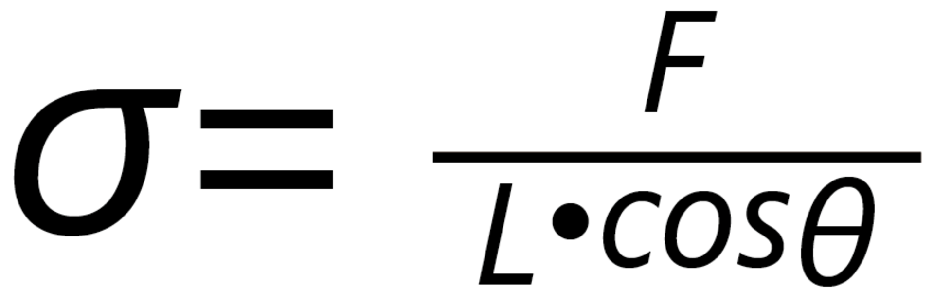 环的润湿长度L是内环和外环的总和。它的材料是铂铱合金,该合金由于具有非常高的表面自由能因此可以很好的润湿,从而与液体形成0°接触角θ (cos θ = 1)。这种材料同时具有化学惰性并且容易清洗。
