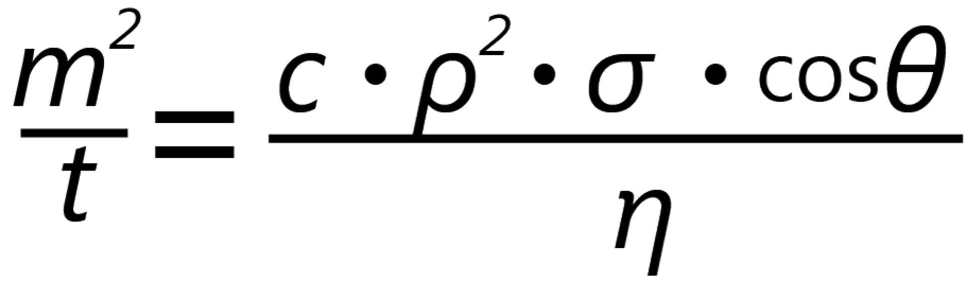 在Washburn测试中,底部带有滤器的玻璃管装有粉末与测试液体接触,由于毛细管效应液体上升,管内增加的质量与时间会被记录。如果粉末看起来像在毛细管中形成束状,这个过程就可以被Washburn等式描述: