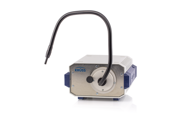 Bei nicht reflektierenden oder unebenen Proben hebt sich das Bild des Tropfens manchmal nicht optimal vom Hintergrund ab. Um die Analyse in solchen Fällen zu verbessern, kann die Probe mit Hilfe der Kaltlichtquelle IL10 zusätzlich beleuchtet werden. Mit dem flexiblen Schwanenhals für die Lampe und der Feinregulierung der Lichtstärke können Richtung, Einstrahlwinkel und Helligkeit genau an die jeweiligen Gegebenheiten angepasst werden.