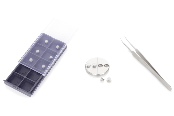 Im Lieferumfang von SH3201 befinden sich zehn Probenpodeste (als SH3200 nachbestellbar) sowie eine Pinzette zur deren einfacher und kontaminationsfreier Platzierung.