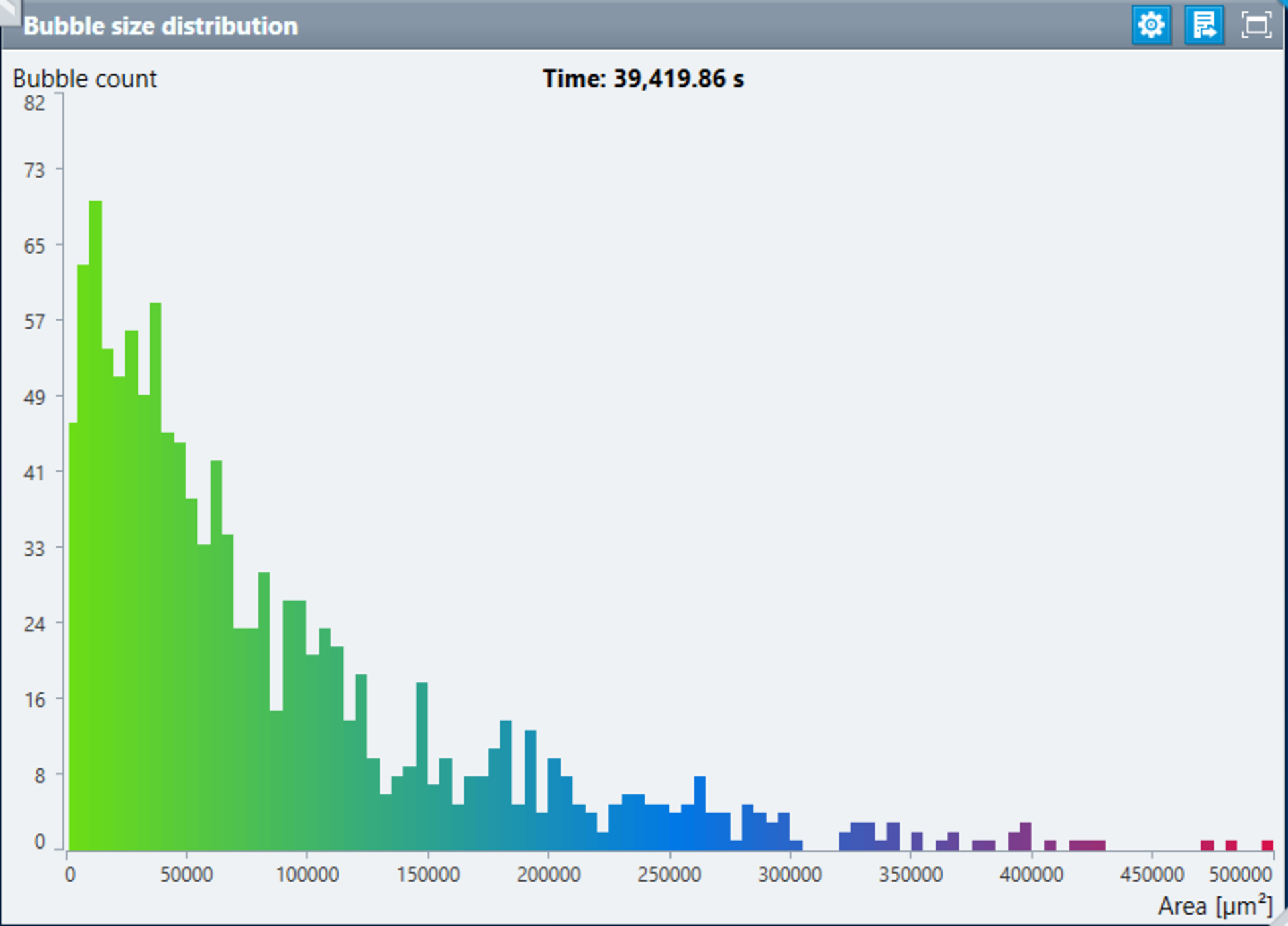 Data such as mean bubble size and statistical bubble size distribution are also available for each measurement time.