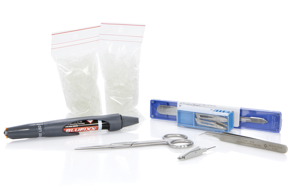 - Tube of adhesive, inserted in a holder with a fitted UV light source (available as spare parts TO0911)