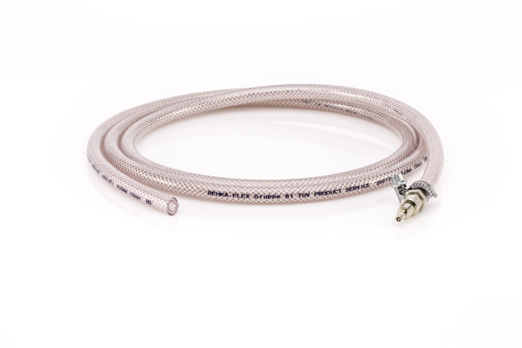 The measuring instrument has a gas connection for optional operation with an external gas supply. The PA2210 accessory is available to establish the connection. The two-meter-long, pressure-stable fabric hose ends in a compatible quick-lock coupling secured with a clamp.