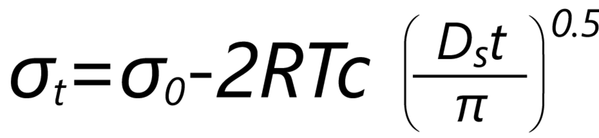 σt = 在表面年龄t下的表面张力t; σ0 = 在纯溶液体系下的表面张力; R = 通用气体常数; T = 绝对温度; c = 溶液体积摩尔浓度; Ds = 扩散系数